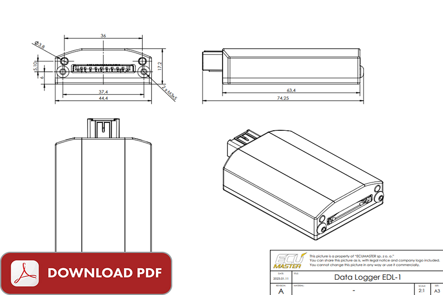 Datalogger pro počítače Ecumaster EMU a Ecumaster EMU_BLACK. Je schopen nahrávat všechny kanály (stejně jako na PC) s přesností 25 Hz na SDHC kartu (vyžaduje 4GB nebo větší).